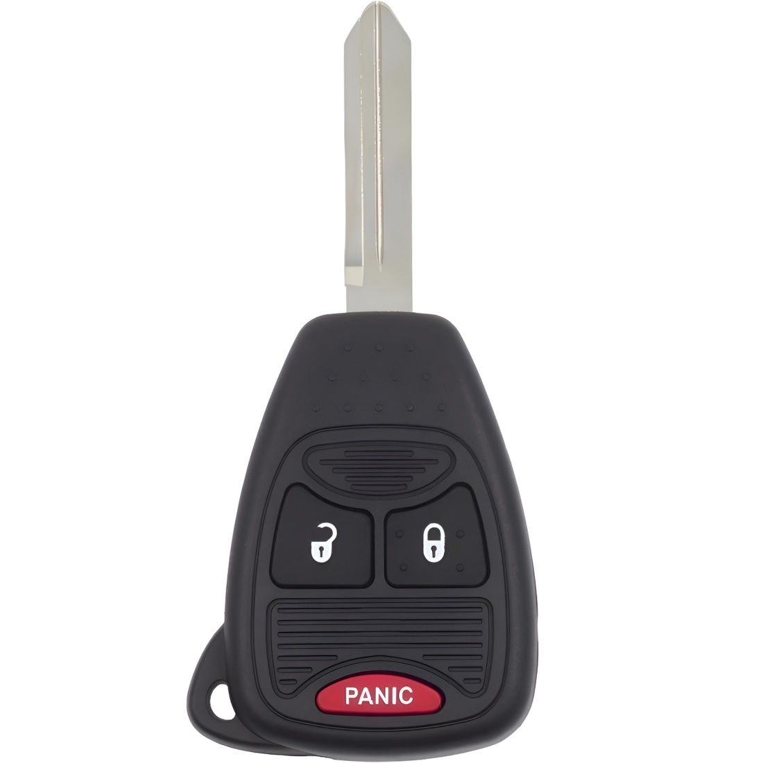 This replacement key fob is designed for Dodge Ram 1500 pickup trucks equipped with factory keyless entry and turn-the-key ignition systems (not push-to-start). It is made to match the original remote in size, function, and button layout for everyday use.